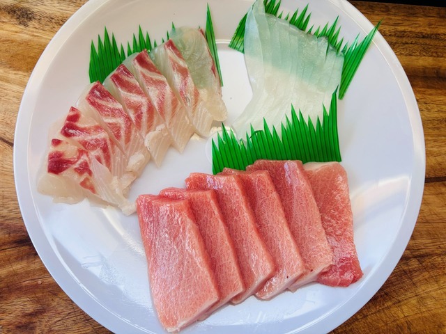 新鮮な海の幸、五島の漁師お任せセット 長崎県五島の漁師が選び抜いた新鮮な魚たちをお届けする「五島の漁師お任せセット」。こちらのセットでは、毎回異なる新鮮な魚が届き、何が入っているか…五島のお魚との一期一会がお楽しみの一つです、全てお刺身にできる鮮度なので、解凍した瞬間から五島の本格的な海の味をご家庭で手軽にお楽しみいただけます。鮮度良くてと量がお得。自分でお魚を捌ける上級者にお勧め。 ◎ 商品内容 五島の漁師お任せセット 新鮮な海の幸(魚種はお任せ) 五島の主な旬の海鮮 春 真鯛 イシダイ ヒラメ イサキ 夏 ハガツオ サザエ カマス キビナゴ 秋 カンパチ シイラ アオリイカ メダイ 冬 鰤 マグロ カンパチ メジナ 旬の魚をお届けいたします 写真のセット例 (15000円相当) メジナ 半身 水イカ半身 ヒラマサ半身 五島養殖マグロ赤身一柵 ■ 素材/製造国 五島灘の魚 ■ 賞味期限/取り扱い注意事項 解凍、開封後はすぐに召し上がることをおすすめします。 賞味期限は冷凍庫で1カ月以内です。パックのまま自然解凍か、お急ぎの場合は流水解凍をお願いします。 ■ 発送・注文に関する情報や注意事項 悪天候や漁の状況により入荷が不安定な場合は、事前にご連絡いたします。冷凍便でのお届けとなりますので、安心してお受け取りいただけます。 ■ その他の情報や注意事項 生ものですので、お早めにお召し上がりください。アレルギーをお持ちの方はご遠慮いただくようお願いいたします。また、離島発送不可、魚種の指定はできませんのでご了承ください。 五島の新鮮な魚で、特別なひとときをお過ごしいただけます。五島の海の恵みを、ぜひご家庭でお楽しみください!お問合せは、ショップのお問い合わせからお気軽にご連絡ください。
